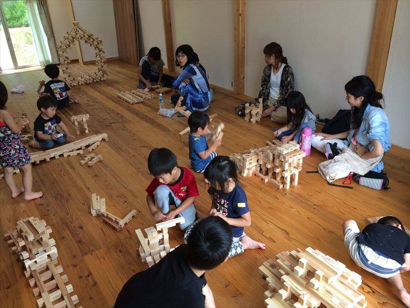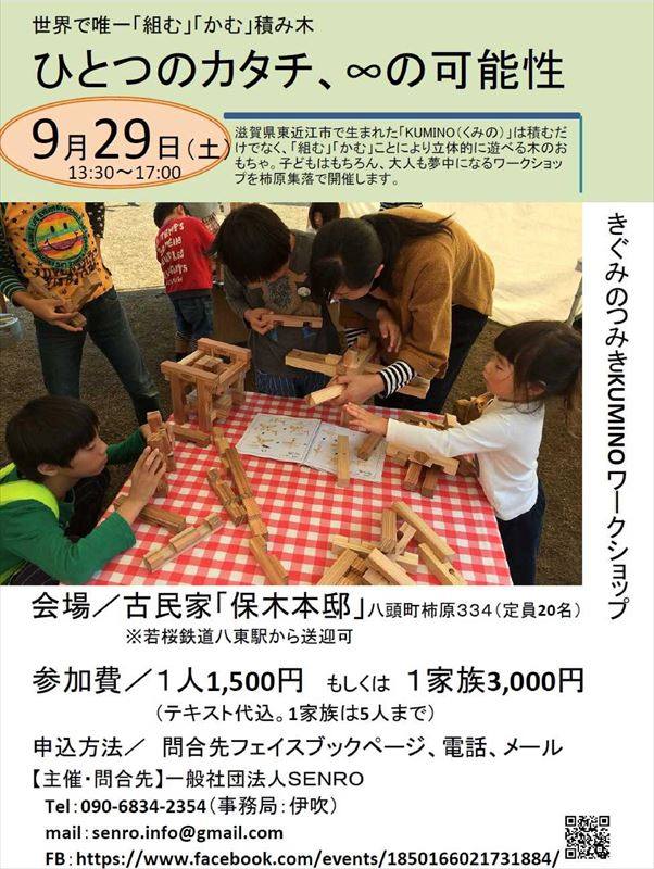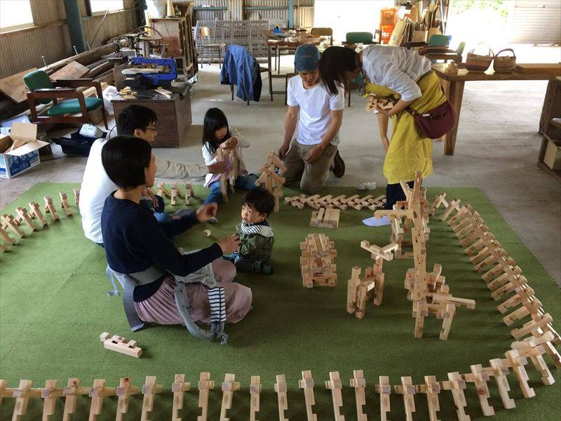 滋賀県東近江市のクミノ工房の木組みのおもちゃワークショップを柿原集落で開催します。お子様連れでぜひ、KUMINOと杉の魅力を感じてください。
