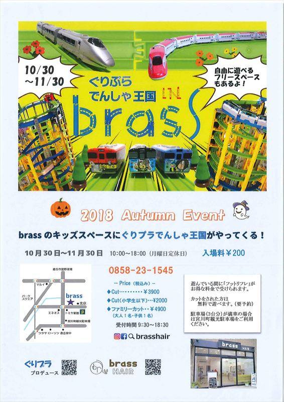 ちびっこ集まれ♪倉吉市の美容院 brass(ブラス)のキッズスペースに「ぐりぷらでんしゃ王国」がやってきます!お客様方のアツイご要望にお答えして親子で楽しめる、鳥取初!?