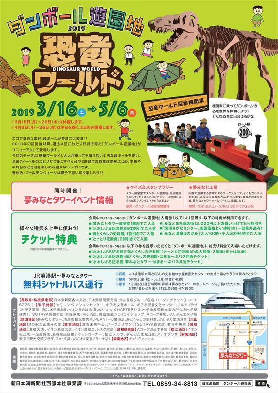 今回のテーマは「恐竜ワールド」。大人が乗っても壊れない丈夫な段ボールを使い、全長7メートルのスピノサウルスすべり台や2階建ての恐竜迷路をはじめ、木馬や平均台など幼児も楽しめる遊具がいっぱいです。春休み・ゴールデンウィークは親子で思い切り楽しもう!!