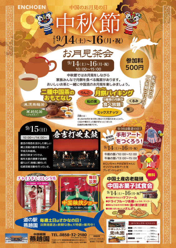 中国庭園 燕趙園で「中秋節」が行われます!3日間様々な催しがありますので、この機会にぜひご来園ください。親子、ご家族でお楽しみいただけます♪