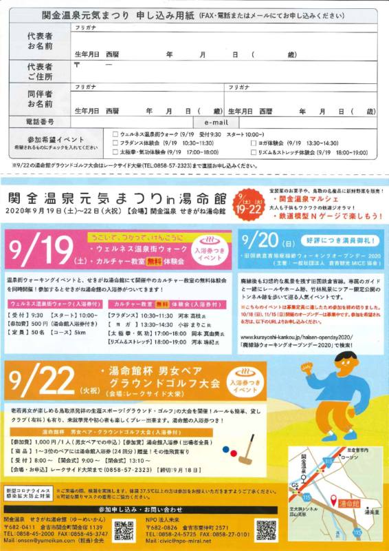 | 場 所 | せきがね湯命館(倉吉市関金町関金宿1139) |