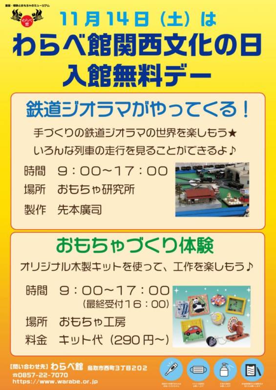 | 入館料 | 通常は入館料が必要ですが、 わらべ館関西文化の日につき入館無料です。 |