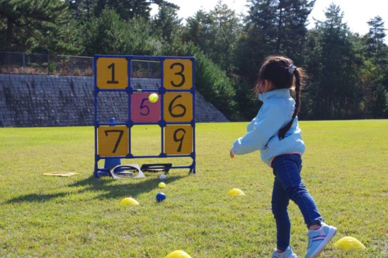 番号の書いてある的にボールを投げます。狙った的に当てることができるでしょうか?(定員:20名/各回)