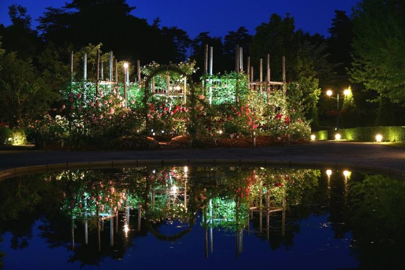 夜の幻想的な「バラ園スペシャルライトアップ」をお楽しみください♪