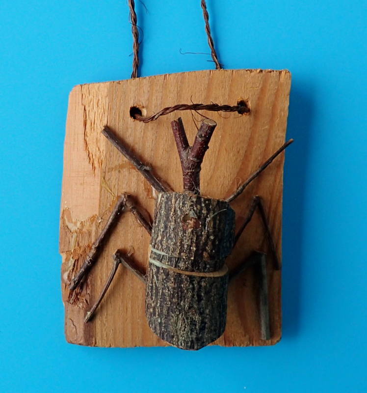 夏休みの工作にもピッタリ♪木の枝、板、木の実などをボンドで接着して、