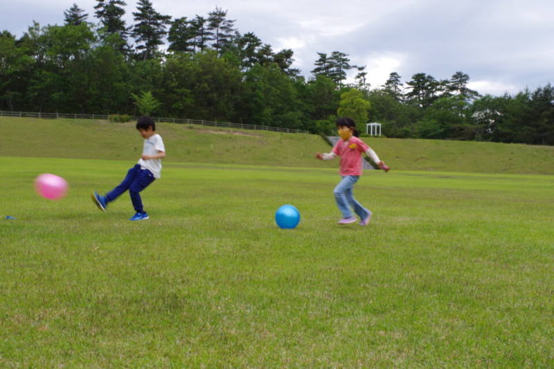 わんぱく広場でボールやフライングディスクなどを貸し出しします。友達や家族と元気いっぱい遊びましょう♪