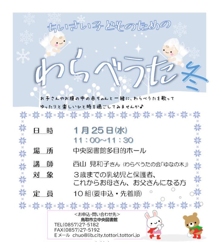 【鳥取市】ちいさい子どものためのわらべうた 冬