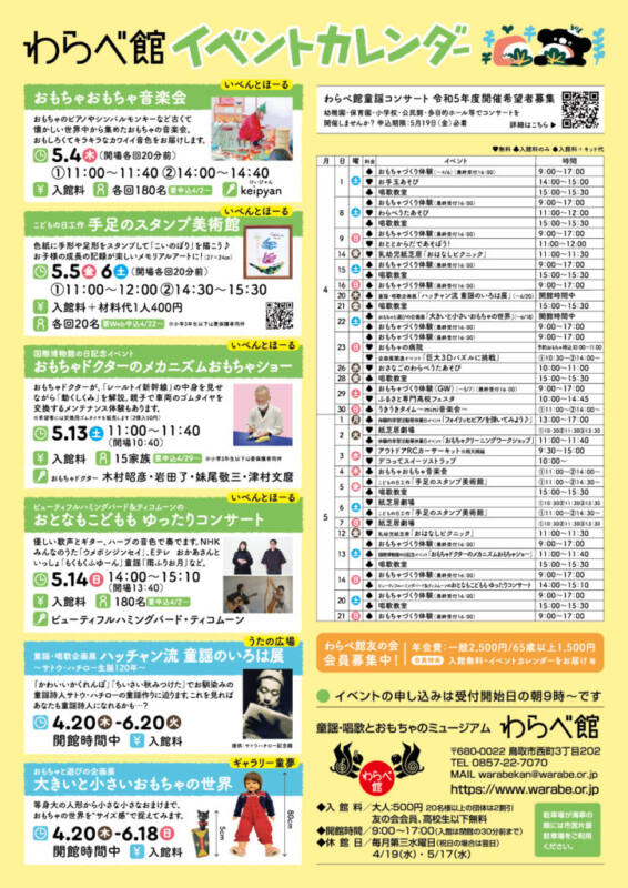 詳しくは https://warabe.or.jp/event-calendar/ をご覧ください。