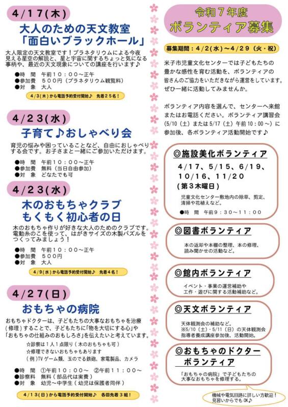 今月も盛りだくさんのイベント内容です!ぜひ、ご来館ください♪