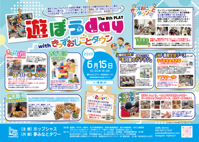 遊ぼうday8回目の開催!今回は、お子様のお仕事体験イベント「きっずおしごとタウン」と初コラボ!子どもたちの頑張る姿も楽しみです!