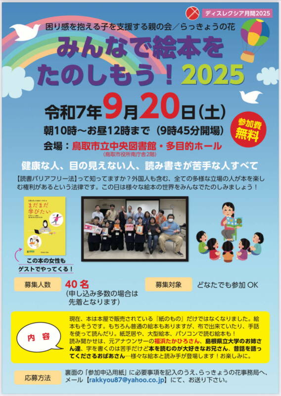 | 場 所 | 鳥取市立中央図書館 多目的ホール(鳥取市富安2丁目138-4) |
