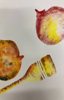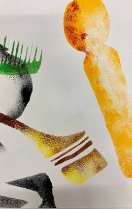 いろいろな物のシルエットに切り抜いた型をステンシルにして色付けします。何のかたちをみつけられるかな?