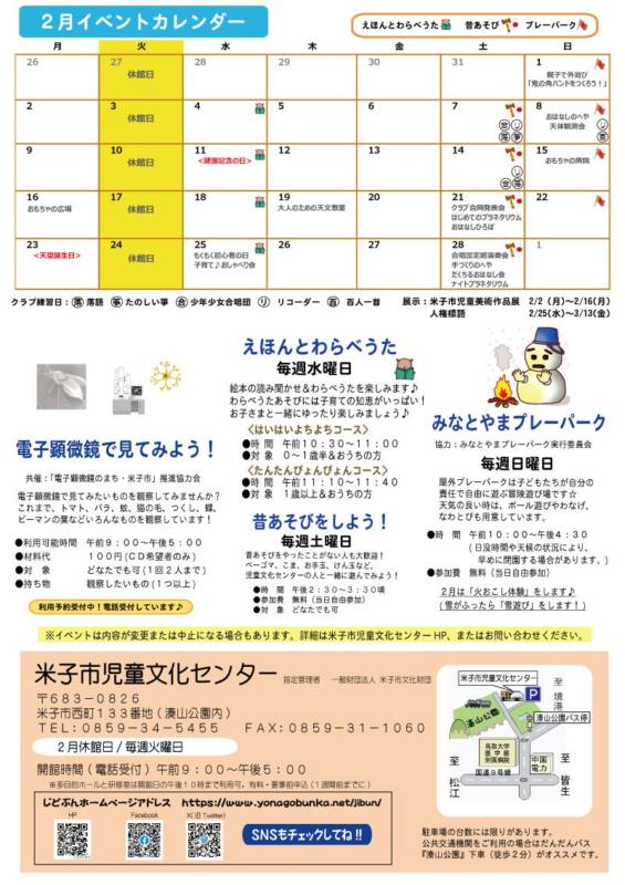 【米子市】米子市児童文化センター2月イベント情報のご案内