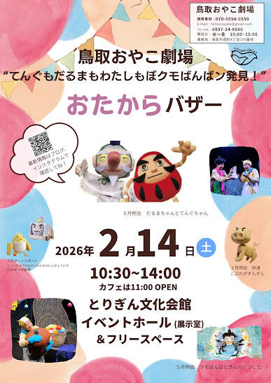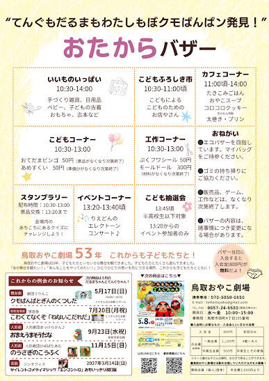 鳥取おやこ劇場主催「だるまもてんぐもわたしもぼクモばんばン発見!おたからバザー」