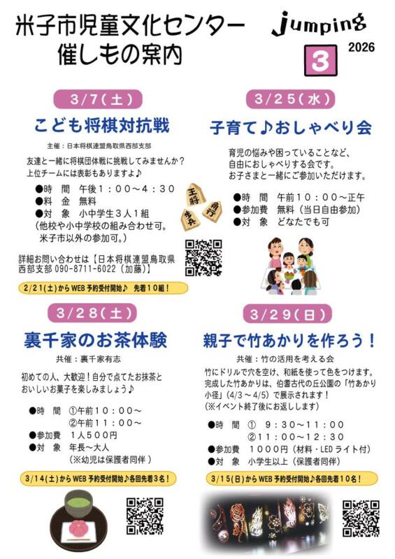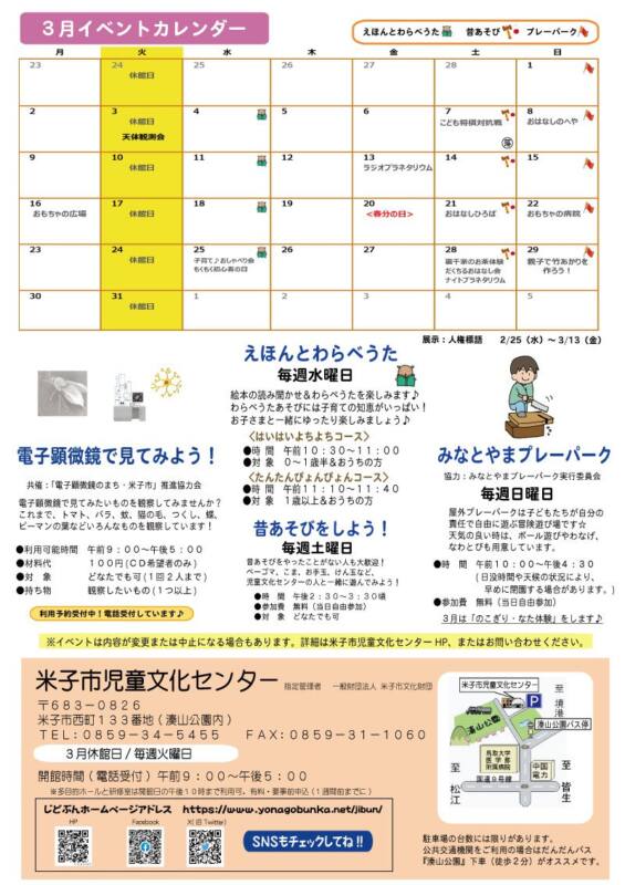 米子市児童文化センター3月イベント情報のご案内