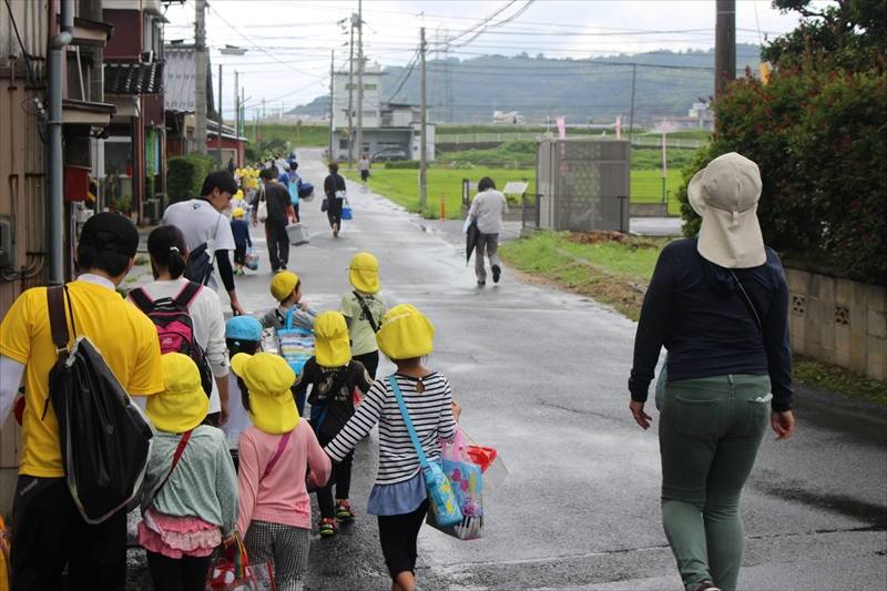 川に着くまでの道中では、園児の楽しそうな会話が聞こえます。