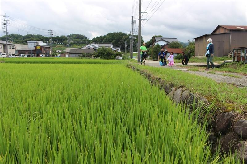 緑が生い茂る山と、あたり一面に広がる田んぼのそばを流れる川。さあ、川に到着~!!