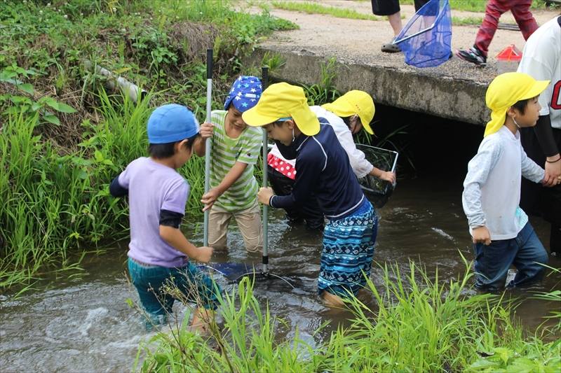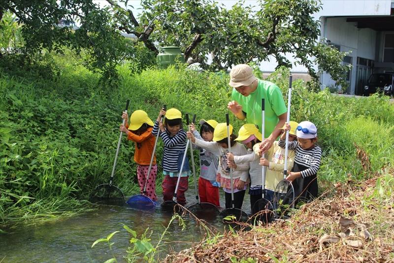 また、普段はあまり自分を出さない子がこの自然体験を通し、周りの園児と一緒になって喜び、楽しんでいる姿もたくさん見ることができ、これまでも水に親しむ活動はありましたが、今回は野性味が溢れるとてもよい機会となりました。