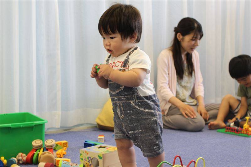 子ども達は、ママから離れて寂しくなって泣き出す子や一人で自由におもちゃで遊ぶ子など、行動や様子も様々。
