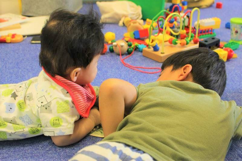 おもちゃで夢中になって遊んでいたり、カーペットの上でゴロゴロしたり♪
