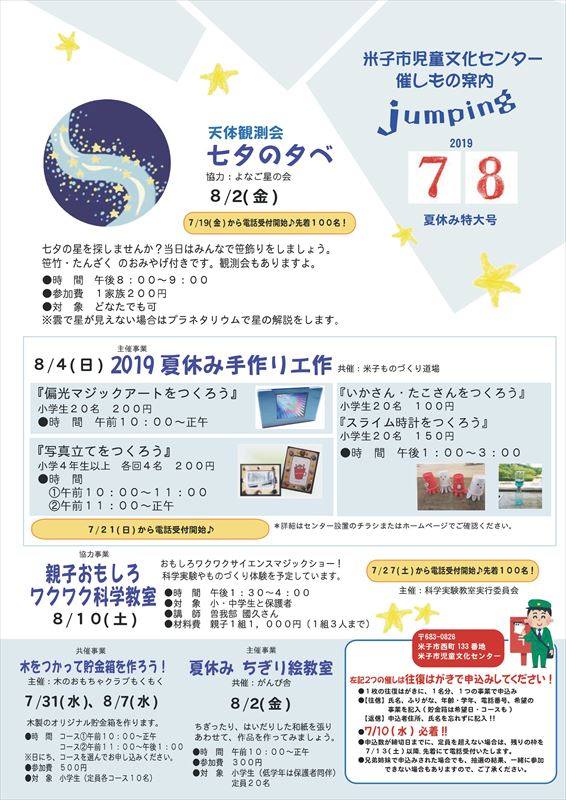 米子市児童文化センターの7・8月の催しもののご案内です。