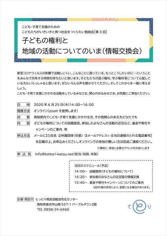 新型コロナウィルスの影響で活動しにくい、こんなことに困っている、もっとこうしたいのに…ということをみんなで共有する時間を持ちたいと思います。子どもたちの遊ぶ権利、学ぶ権利等について心配している方もいらっしゃると思います。ぜひいろんな声を聴かせてください。そしてこれからを一緒に考えましょう。こども・子育て支援にかかわる活動をしているみなさま、関心のあるみなさま、お気軽にご参加ください。