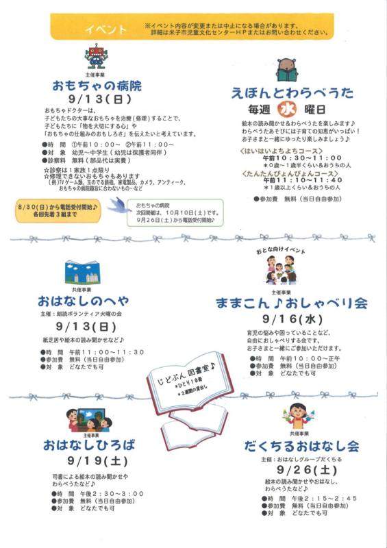 ※イベントは内容が変更または中止になる場合があります。イベント開催に関する最新情報は、HPをご確認ください。