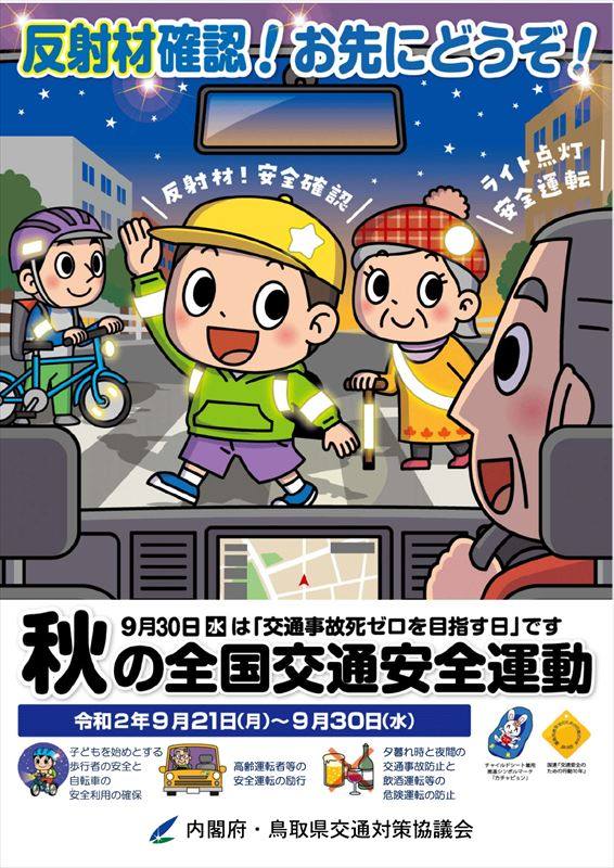 令和2年9月21日から9月30日まで、秋の全国交通安全運動を実施します。