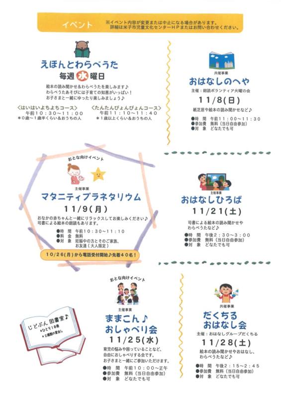 ※イベントは内容が変更または中止になる場合があります。イベント開催に関する最新情報は、HPをご確認ください。