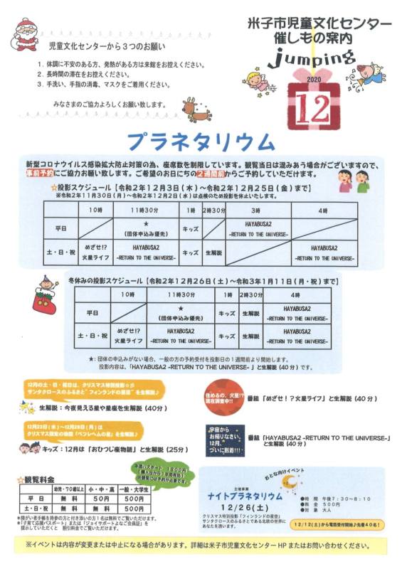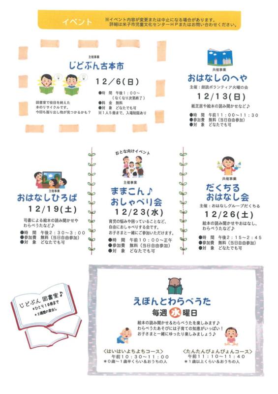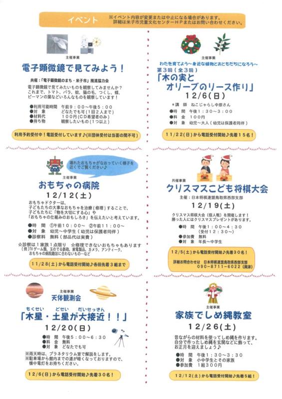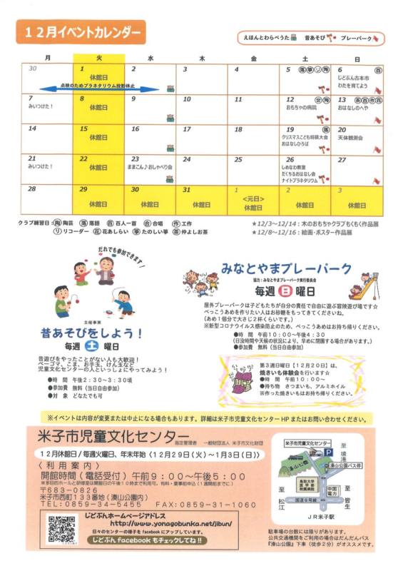 米子市児童文化センターの12月の催しもののご案内です。