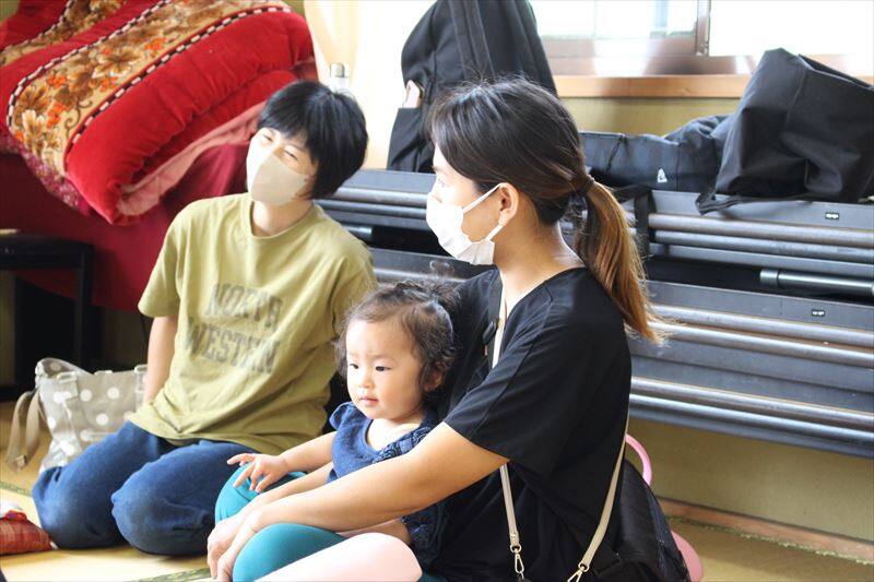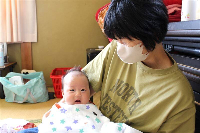 赤ちゃんたちも過ごしやすいぽかぽか陽気で、ごきげんな様子♪広い畳の部屋で自由にハイハイをしたり、お母さんに抱っこされたり、親子でのんびりと過ごされていました。