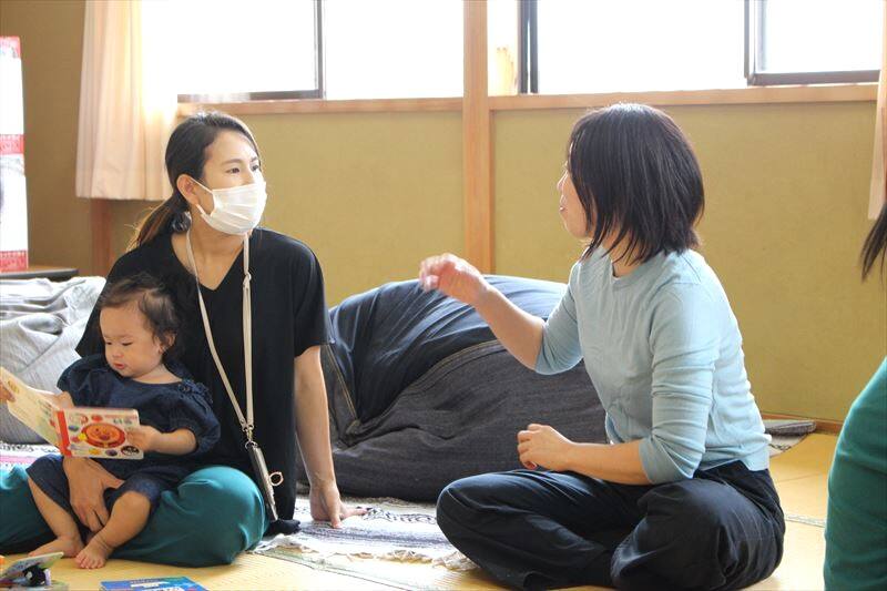 赤ちゃんたちも過ごしやすいぽかぽか陽気で、ごきげんな様子♪広い畳の部屋で自由にハイハイをしたり、お母さんに抱っこされたり、親子でのんびりと過ごされていました。