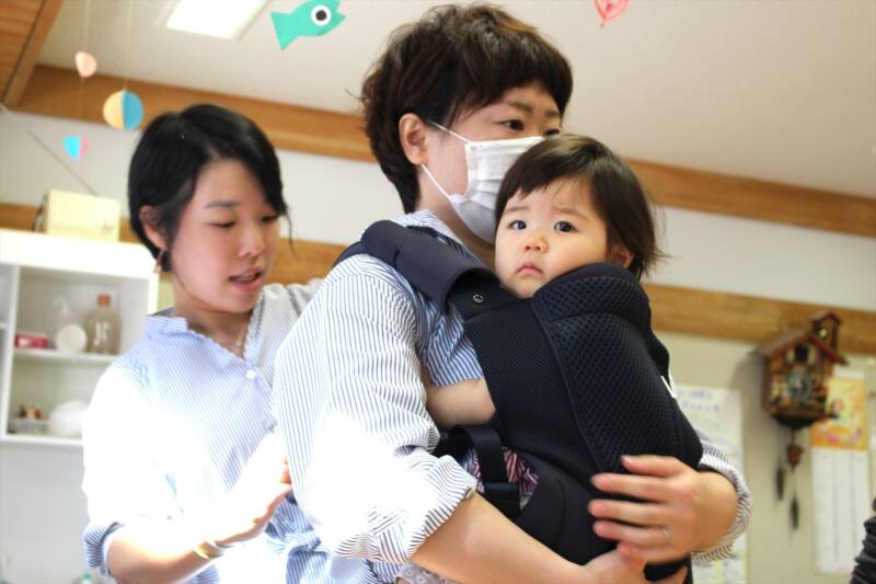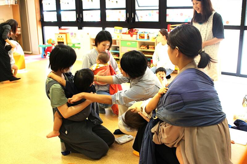 その中で、お母さんから支援センターの先生に「抱っこの仕方がわからない」と相談が寄せられました。そこで、ベビーウェアリングコンシェルジュとして活動する梅津さんに抱っこの体験会をお願いして実現しました。