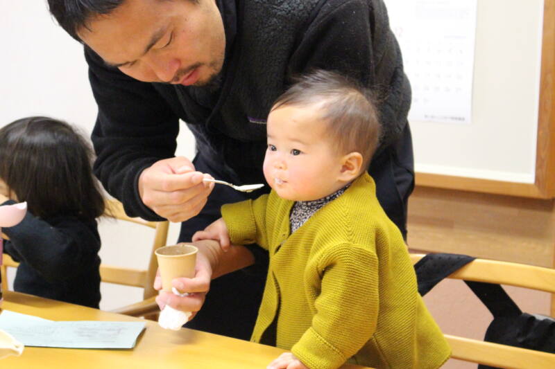 伯耆町の管理栄養士の方が調理された離乳食・乳児食を赤ちゃんや保護者の方が実際に試食しました。参加したお母さんは、「乳幼児期に適した味付や形状を知ることができ、配布されたレシピを見ながら家でも実践できるので、離乳食作りなどの不安が解消されました!」と話されていました。