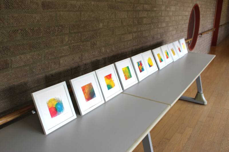 「クリニカルアート」では、親子で美術作品を作ることで脳と心を活性化させ、癒しの効果を得ることができます。完成した作品は、廊下に展示されていました♪