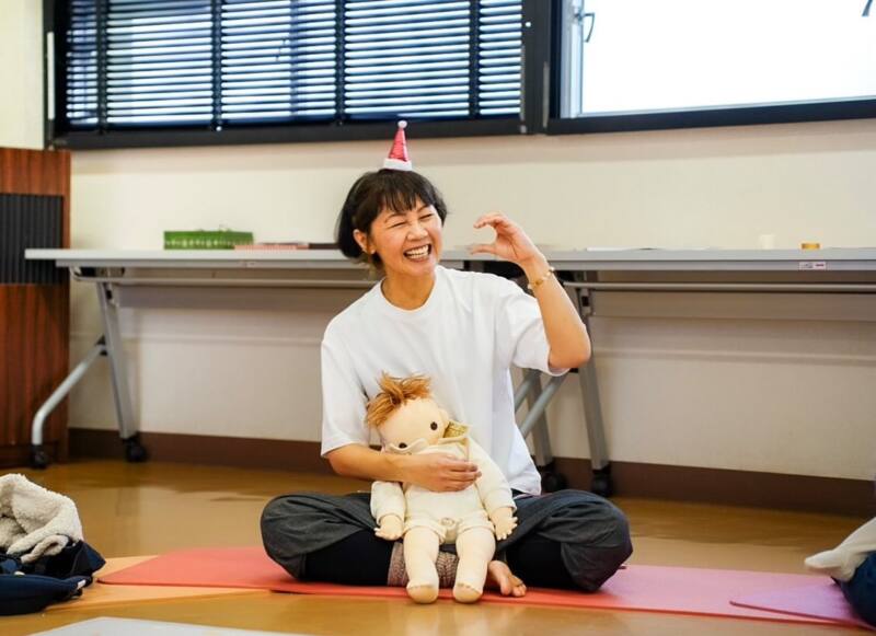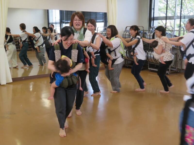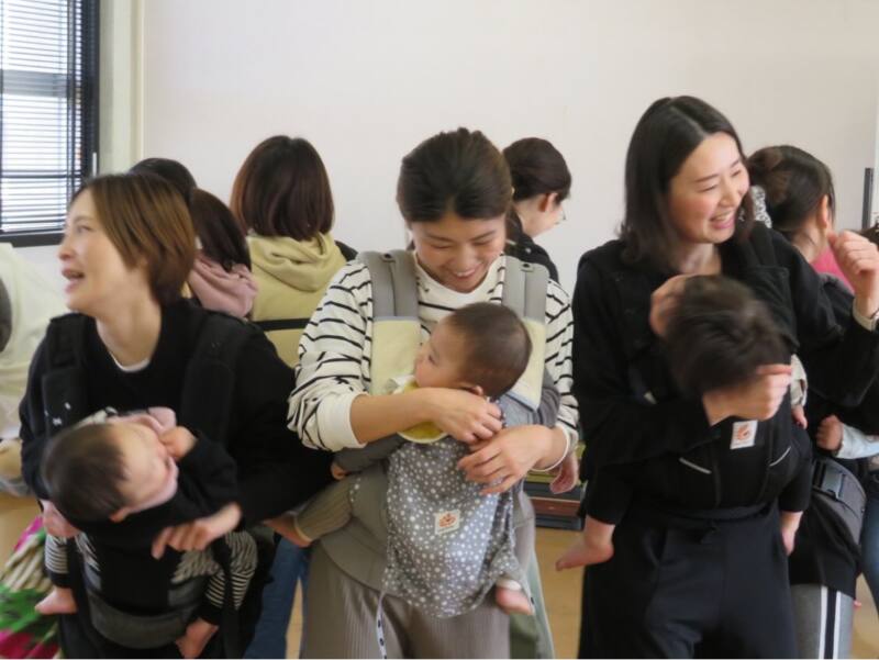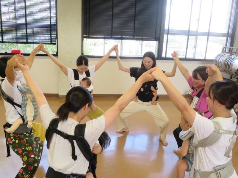 参加したお母さんたちは赤ちゃんを抱っこして体を動かし、楽しそうな様子でした。