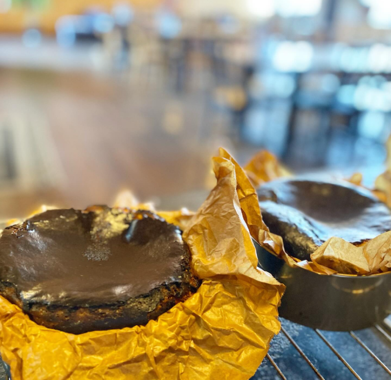 しっとり濃厚な味わいのバスクチーズケーキ(左)。